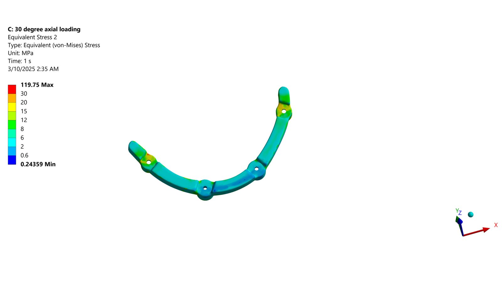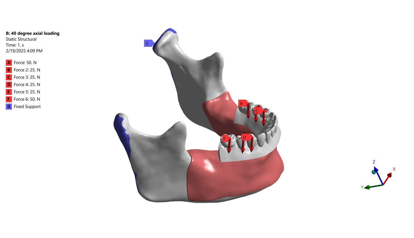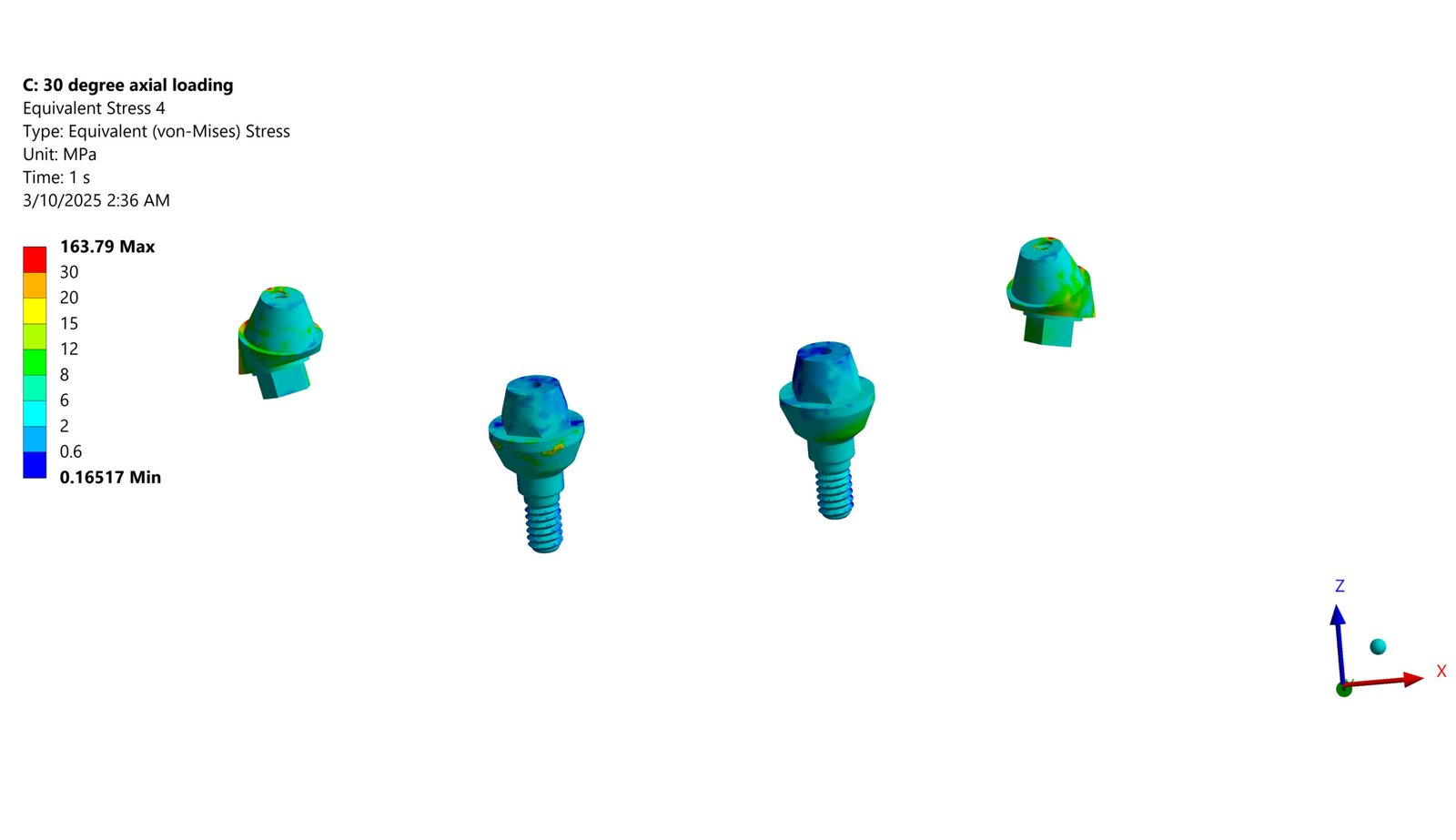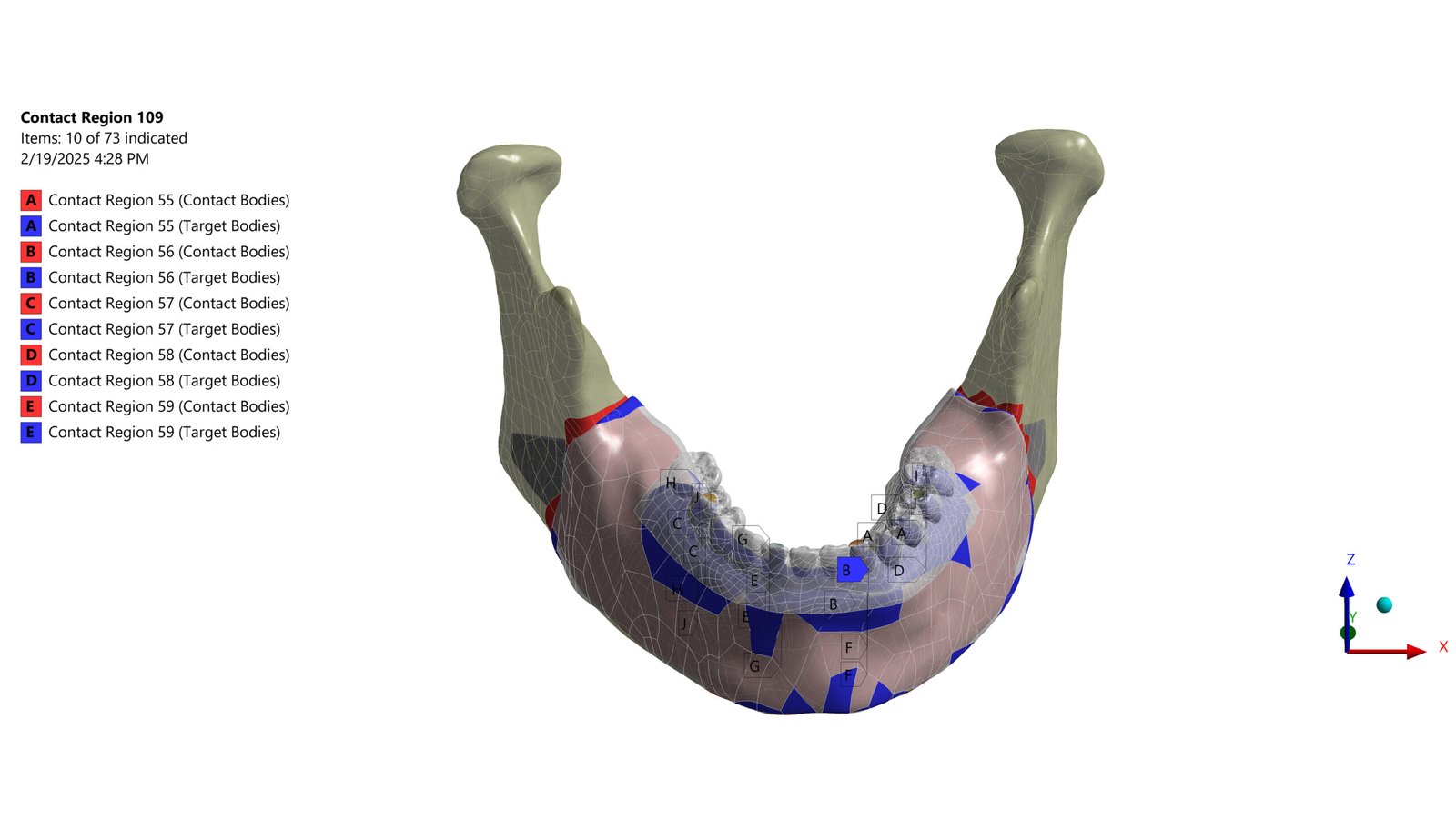 We simulate dental and orthopedic prosthetic systems to analyze stress distribution, fatigue life, and wear behavior. These studies optimize prosthetic design for durability, stability, and patient comfort, supporting clinicians and manufacturers in developing safer and more efficient solutions.